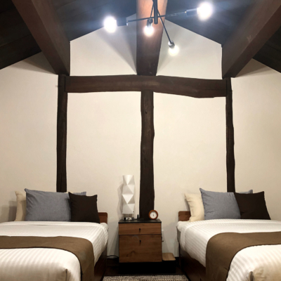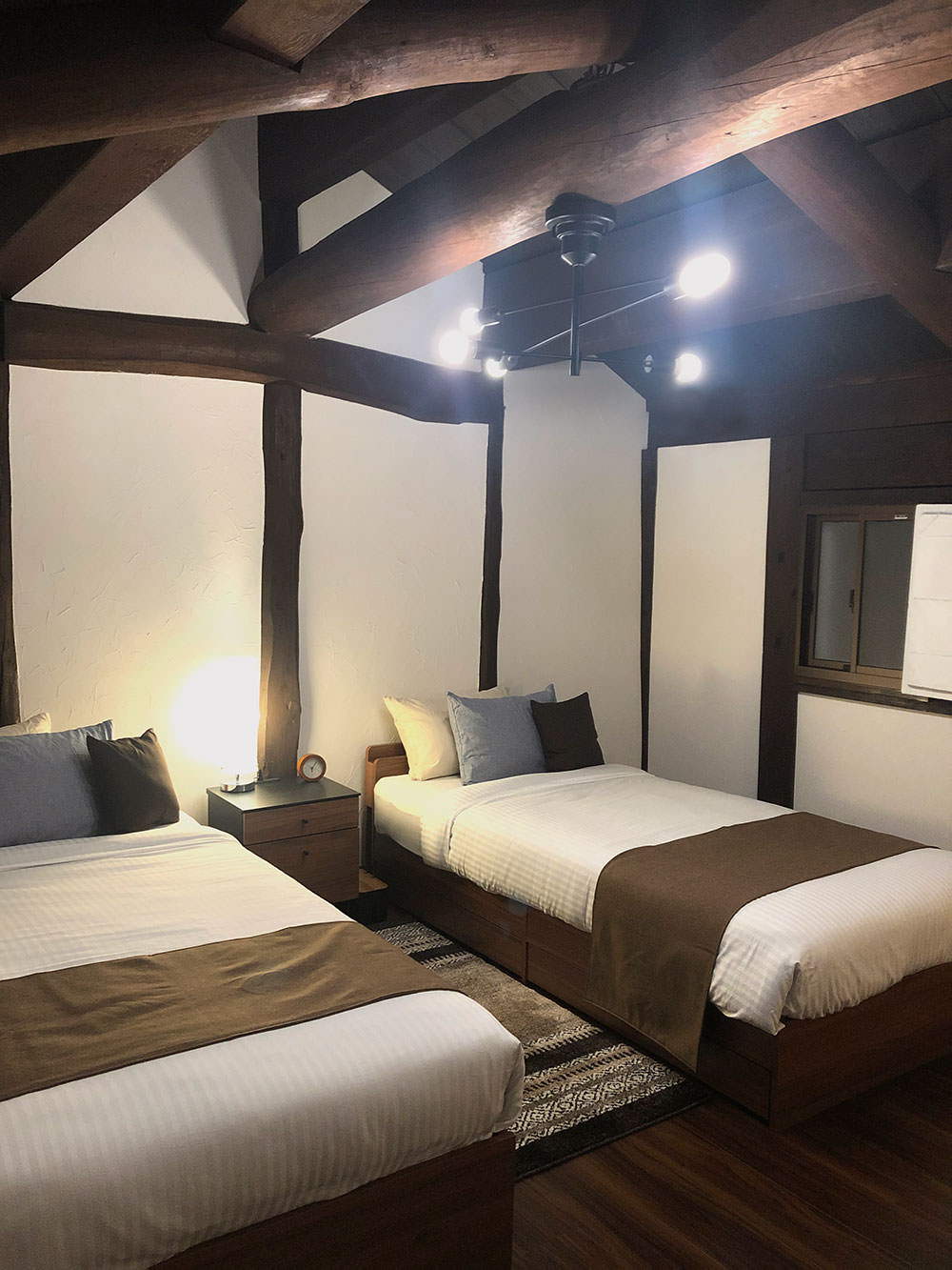 柱や梁はそのまま活かした、蔵の趣が残る落ち着いたお部屋です。